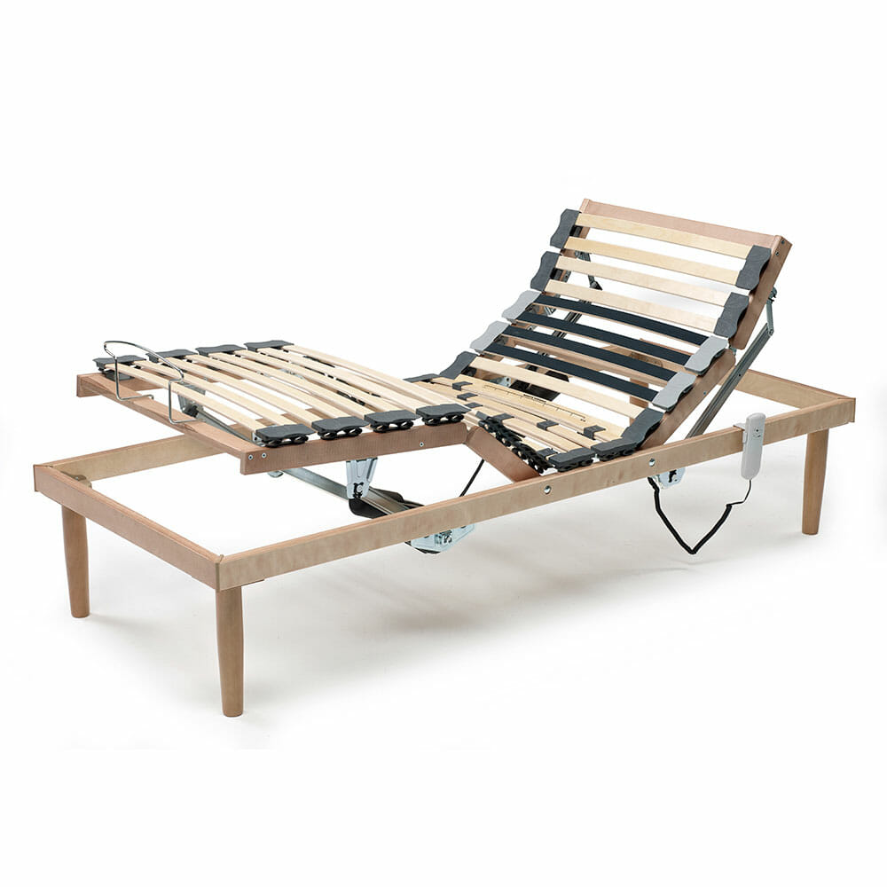 Rete ortopedica Legno Motorizzata con 17 doghe e struttura in multistrato di faggio 60x25mmPiede in legnono diametro 50mm